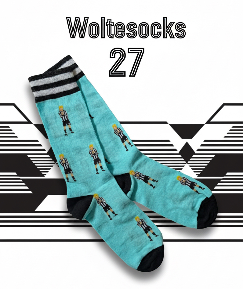 WolteSocks are inspired of course by NUFC’s number 27b ands iconic celebration. Practiced for Stuttgart, the Manschafft and Newcastle United we all hope we can see Nick’s celebration more and more often!